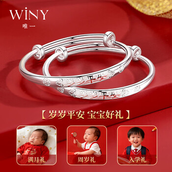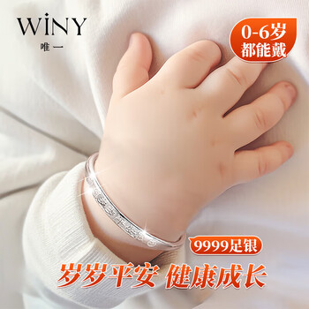 唯一(Winy)银手镯宝宝小孩银饰9999足银镯子新生儿见面礼满月儿童生日礼物