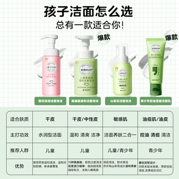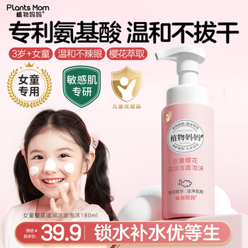 植物妈妈儿童洗面奶女孩3-6-12岁氨基酸温和泡沫洁面宝宝护肤专用 180ml