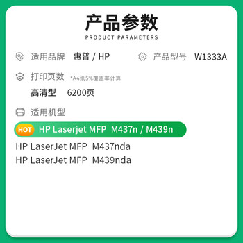 才进适用惠普W1333A碳粉LaserJet MFP m437n m437dn m437nda复印机墨粉m439n m439nda m439dn粉盒W1333X 333A