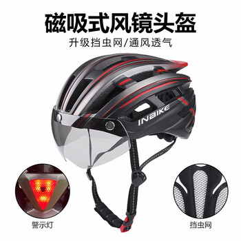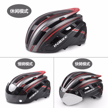 INBIKE 山地公路自行车带风镜一体成型骑行头盔男女安全帽子装备