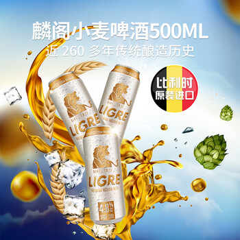 麟阁比利时原装进口小麦白啤酒500ml*24听整箱 聚会 囤年货 送好礼