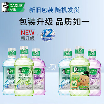 好来(原黑人)清新护龈漱口水3支共750ml温和零酒精口味新老包装随机发