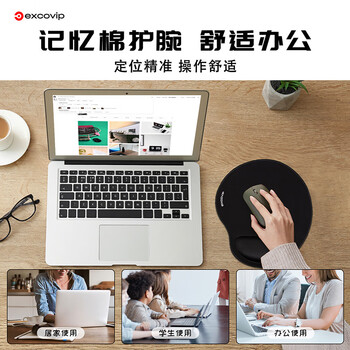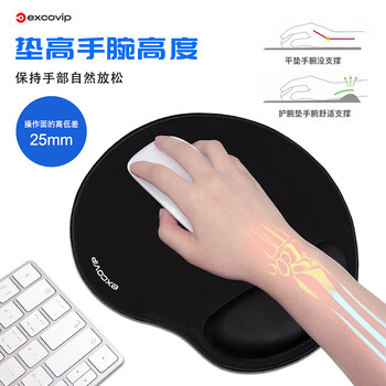 宜适酷(EXCO)鼠标垫护腕大号手腕垫 包边记忆棉护腕鼠标垫腕托垫手笔记本电脑办公游戏锁边护手托枕 黑色9101