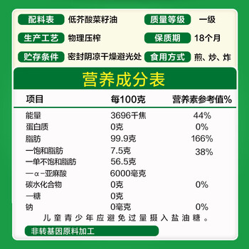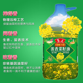 鲁花【保真菜籽油】非转基因低芥酸浓香菜籽油 6.09L 香飘万家