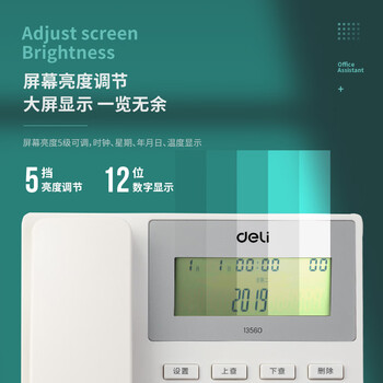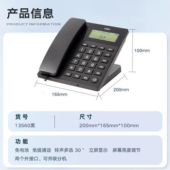 得力(deli)电话机座机 固定电话 办公家用 30°倾角 亮度可调 13560黑