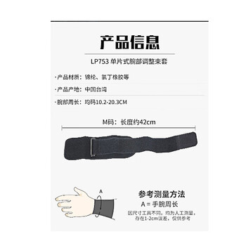 LP753护腕卧推网球羽毛球运动手腕关节支撑加压可调节束带 单只均码