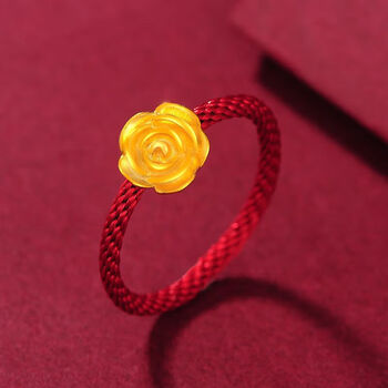 蒂蔻(Tico)足金玫瑰花黄金戒指女3D硬金转运珠编织红绳指环送女友生日礼物