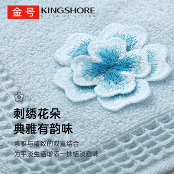 金号毛巾礼盒套装 纯棉节日礼物绣花吸水洗脸巾晴空蓝+浴球