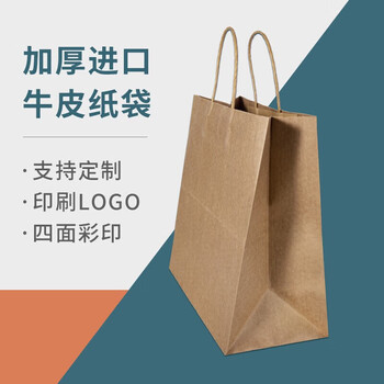 特美居牛皮纸袋手提袋20只特大号可定制礼品打包袋外卖烘焙袋28*15*28cm