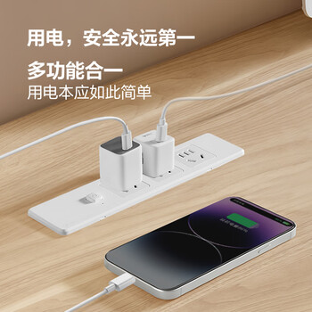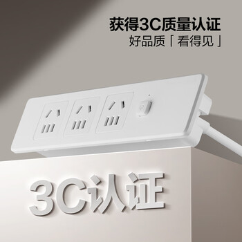 公牛(BULL)嵌入式插座/插线板/插排/排插/接线板/拖线板 多功能桌面/家具 白色3位总控1.8米GNQ-Q1031
