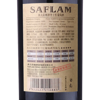 西夫拉姆红酒 酒堡50年树龄赤霞珠 干红葡萄酒 750ml*6瓶 整箱装 热门商品