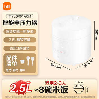 米家小米电压力锅高压锅电饭煲家用2-3个人 多功能电炖锅煮饭煮粥锅 不粘锅内胆不锈钢上盖2.5L