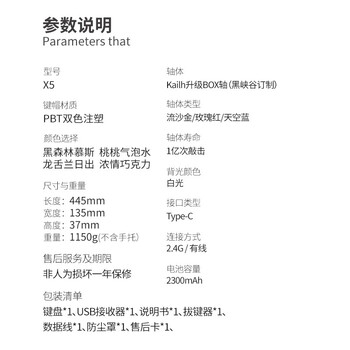 键盘*1 说明书*1 质保卡*1 防尘面罩*1 拔键器*1 手托*1 接收器*1 数据线*1