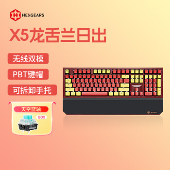 黑峡谷(Hyeku)X5有线/无线2.4G双模机械键盘108键PBT键帽龙舌兰日出凯华BOX天空蓝轴附卡扣腕托