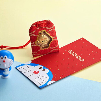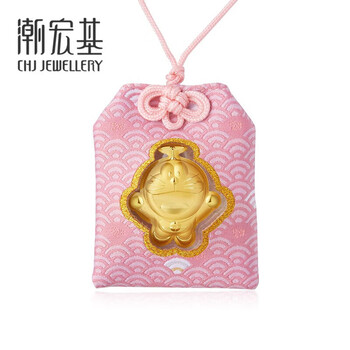 潮宏基足金黄金金币挂件定价 哆啦A梦御守