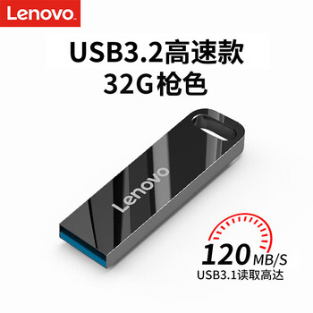 联想(Lenovo)32GB USB3.2 U盘 SX1速芯系列枪色 金属耐用 商务办公必备