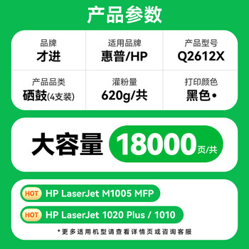 才进适用惠普m1005硒鼓hp1020晒鼓12a易加粉1020plus碳粉1010墨粉m1005mfp打印机1018墨盒q2612a粉盒laserjet