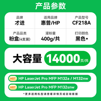 才进适用惠普M132a硒鼓LaserJet Pro MFP M132fw/fn/fp墨盒M104a/w打印机HP18a碳粉CF218a粉盒M132nw M132snw