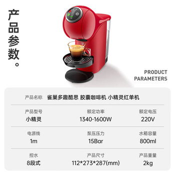 DOLCE GUSTO雀巢多趣酷思 胶囊咖啡机 小精灵红单机 全自动升级款 新增预浸泡功能 4档控温