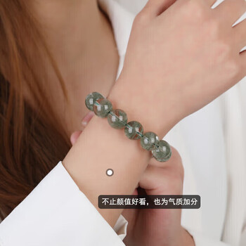 石玥珠宝精品13-14mm天然绿幽灵手串本命年转运珠手链男女士款 水晶玛瑙