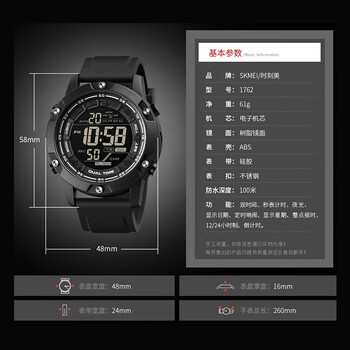 时刻美(skmei)学生初高中生青少年游泳运动专业防水电子手表多功能闹钟男款1762