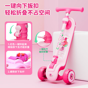 迪士尼(Disney)儿童滑板车1-3-6-12岁滑滑车可升降折叠滑步车划板车草莓熊生日礼