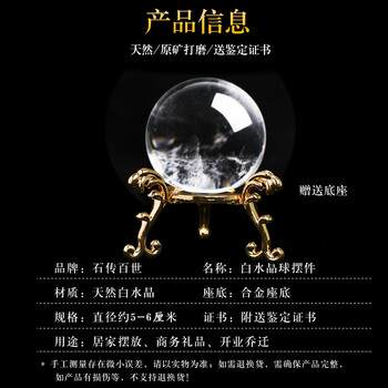石传百世天然白水晶球摆件摆设办公桌家居客厅工艺品礼品装饰品附证书