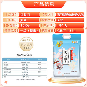 福临门 雪花飘香 长粒香 东北大米 20斤*1