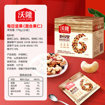 沃隆每日坚果175g/7袋坚果炒货孕妇零食核桃仁腰果混合干果小包装