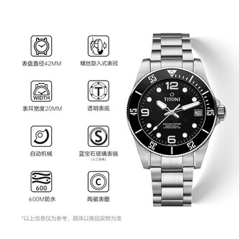 梅花(Titoni)瑞士手表男士机械表海洋探索系列600M自动潜水腕表天文台认证礼物