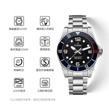 梅花(Titoni)瑞士手表男士机械表 海洋探索系列600M自动潜水腕表 天文台认证