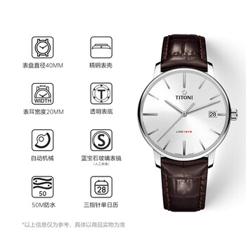 梅花(Titoni)瑞士手表 全新LINE1919系列自动机械皮带男士手表 送男友礼物