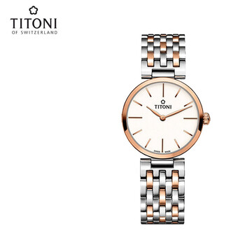 梅花(Titoni)瑞士手表女士石英腕表纤薄系列间金钢带TQ42718SRG-606送女友礼物