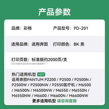 彩格PD-201硒鼓适用奔图PANTUM P2200 P2500W M6550 M6600 M6600 P2500 系列打印机硒鼓M6500硒鼓pd201硒鼓粉盒