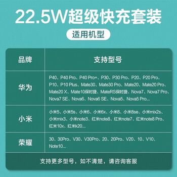 酷蛙【22.5W超级快充套装】充电器头5A数据线套装华为小米8荣耀v20安卓p30手机mate30/40