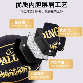 斯伯丁(SPALDING)SPALDING黑金比赛篮球星型PU7片拼接室内外比赛用球76-869Y