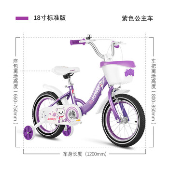 永久(FOREVER)儿童自行车4-8岁男女款宝宝童车小孩脚踏车可拆辅助轮18寸紫色