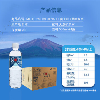 Mt. FUJI's OMOTENASHI日本原装进口 富士山 天然矿泉水 500ml*24瓶 整箱
