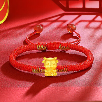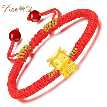 蒂蔻(Tico)足金十二生肖羊黄金转运珠手链红绳3D金羊本命年手链生日礼物