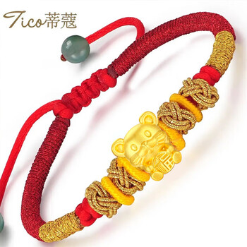 蒂蔻(Tico)足金十二生肖鼠黄金转运珠手链红绳3D金鼠本命年手链生日礼物