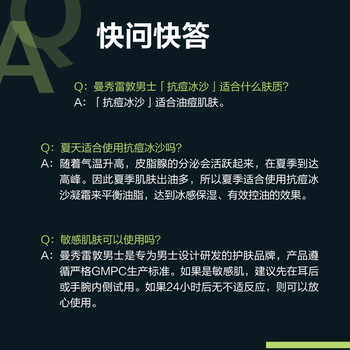 曼秀雷敦男士控油抗痘冰沙面霜50ml补水保湿乳液擦脸油礼物送男友