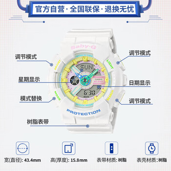 卡西欧(CASIO)手表女BABY-G原宿运动电子学生日韩表送女友礼物BA-110XTM-7A