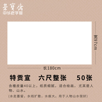 荣宝斋 宣纸 传统手工檀皮安徽泾县装裱收藏送礼书法国画山水写意创作品纸 特供宣六尺-50/张