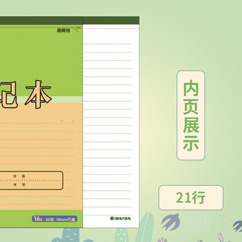 凯萨(KAISA)16K/30张笔记本 上翻易撕式小学生初高中学生作业本笔记本本子作文纸练习本 5本装