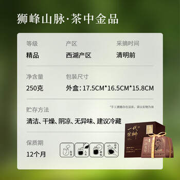 狮峰牌2026年新茶上市绿茶西湖龙井茶叶明前精品250g一代宗师礼盒装