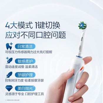 欧乐B成人电动牙刷男士女士P4000深度清洁牙龈呵护3D声波京东自营热卖榜情侣生日礼物新年礼物年会礼品