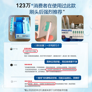 飞利浦(PHILIPS)电动牙刷头官方原装适配钻石3/7/9系列刷柄清洁 6支装 HX6016