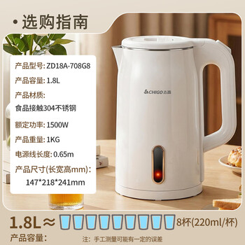 志高(CHIGO)【热销百万+】烧水壶电热水壶电水壶双层防烫1.8L大容量家用烧水壶304不锈钢内胆大功率快速烧水