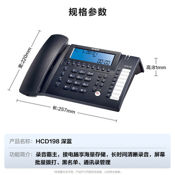 步步高(BBK)录音电话机 固定座机 办公家用 接电脑海量存储 智能屏幕拨打 HCD198深蓝