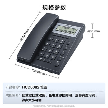 步步高(BBK)电话机座机 固定电话 办公家用 经久耐用 座式壁挂式双用 HCD6082雅蓝